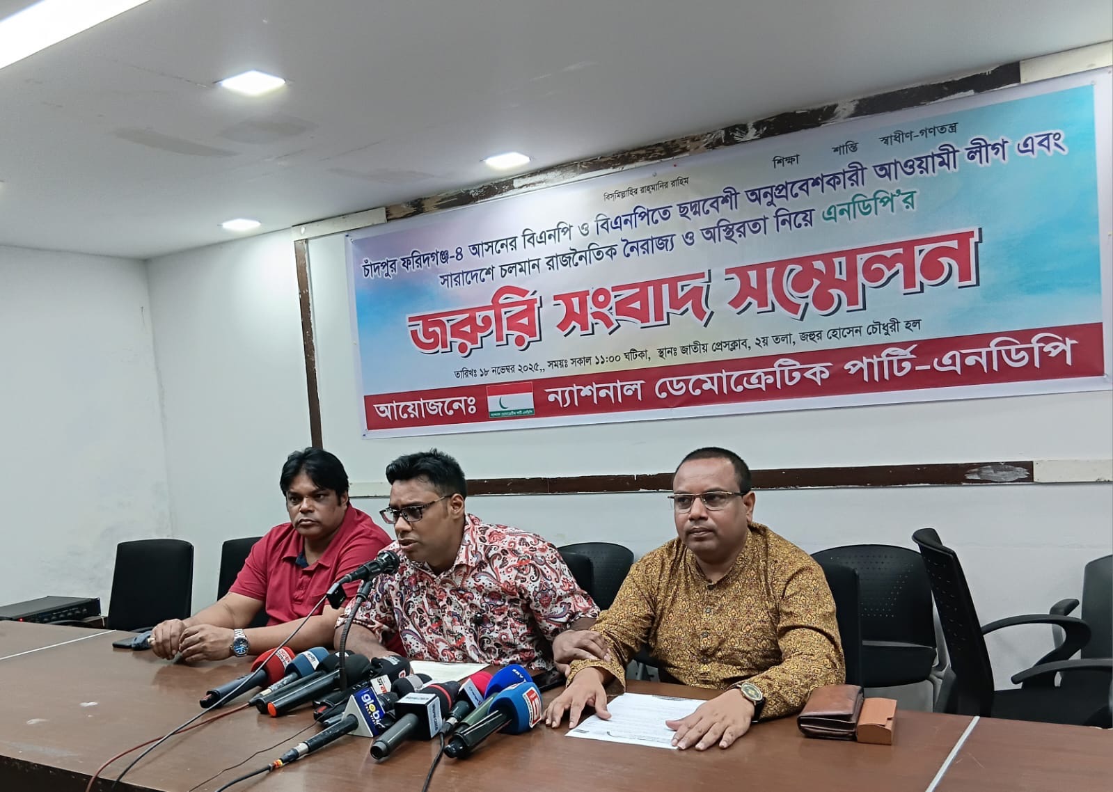 চাঁদপুর ফরিদগঞ্জ-৪ ও জাতীয় রাজনৈতিক সংকট নিয়ে এনডিপির জরুরি সংবাদ সম্মেলন”